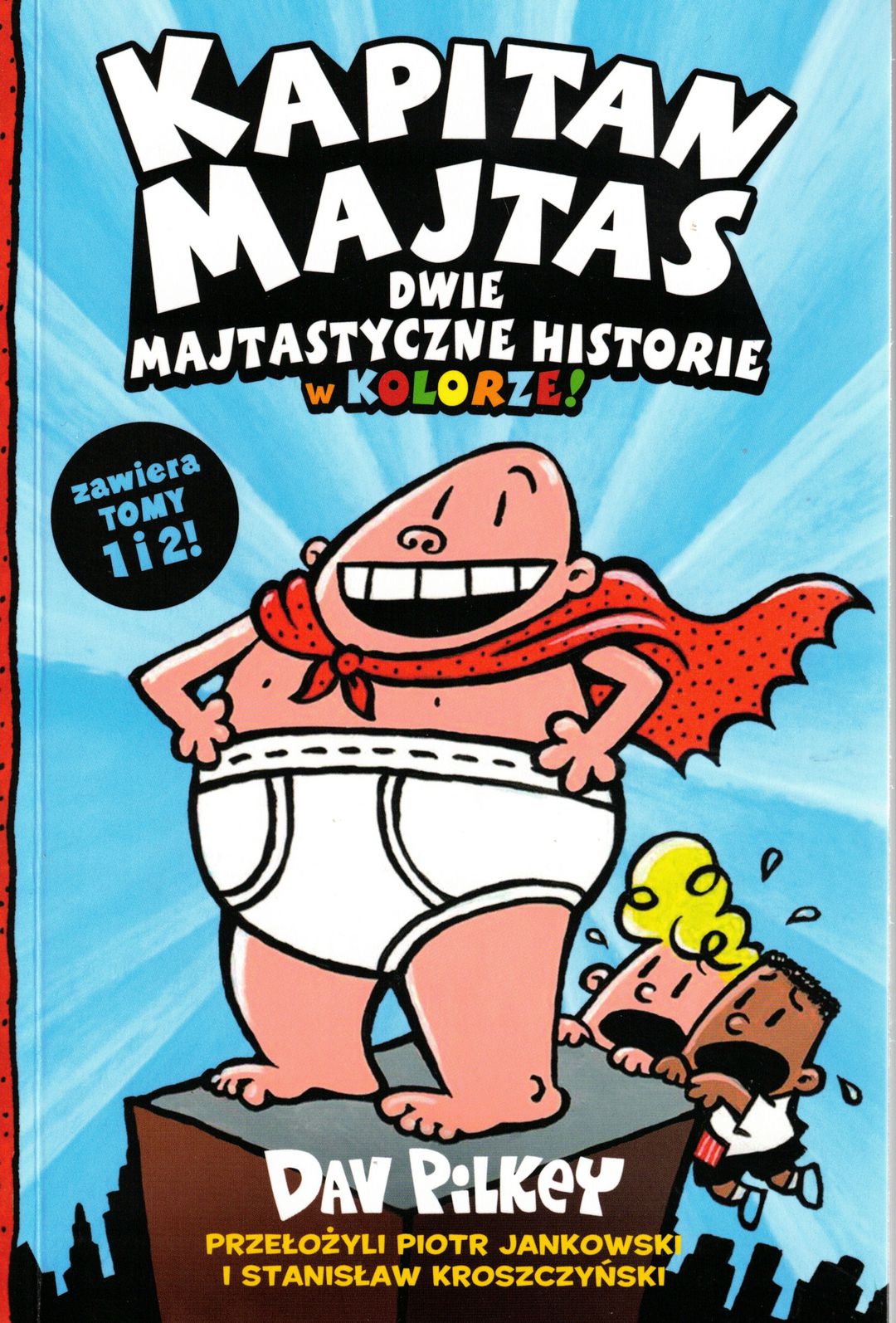 Dwa tomy w jednym – i to w kolorze! Przygody Kapitana Majtasa pióra Dava Pilkeya (tego od bestsellerowego Dogmana),w nowej odsłonie! George i Harold to dwaj zwyczajni przyjaciele. Chodzą do czwartej klasy szkoły podstawowej im. Jerome’a Horwitza i są miłymi chłopcami. Są też bardzo odpowiedzialni. Kiedy dzieje się coś złego, zazwyczaj to oni ponoszą za to odpowiedzialność. Ale przecież to nie ich wina, że w szkole zawsze panuje nuda, przez co oni wpadają na różne pomysły. Chłopcy są też kreatywni. Ich komiksy o niepokonanym, wielkim, przewspaniałym Kapitanie Majtasie cieszą się wśród kolegów dużym powodzeniem. (Cena komiksu: 0,50 $). Dziwne tylko, że dyrektor Krupp jakoś nie darzy ich szacunkiem… Przygotuj się na wybuchy śmiechu, gigantyczne gacie i najbardziej zakręcone przygody, jakie widziała podstawówka!