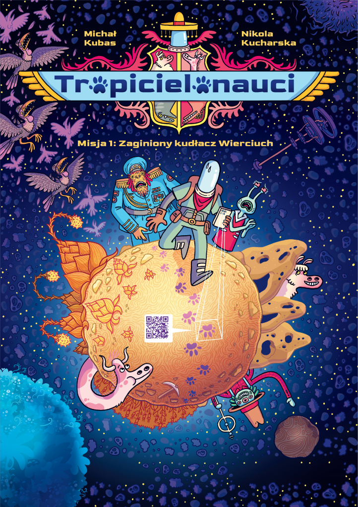 Do jasnej komety! Zaginął kudłacz Wierciuch… Tropicielonauto - czeka Cię nowa misja! Aby rozpocząć interaktywną przygodę, otwórz książkę, wciel się w tropicielonautę i zacznij czytać komiks paragrafowy, który szybko przeniesie cię do kosmicznej rzeczywistości. Za chwilę podejmiesz ważne decyzje - akcja może potoczyć się przeróżnie, w zależności od tego, co wybierzesz. Czy skierujesz swoje kroki do jaskini, a może opuszczonej osady? Wszystko zależy od Twoich wyborów. To nie wszystko! Chwyć za telefon, a właściwie tropibota - urządzenie telefoniczne wyposażone w aplikację. Skanuj kody QR z komiksu, a otrzymasz dostęp do informacji na wagę kosmicznego złota! Dzięki temu twoja misja będzie jeszcze ciekawsza, a Ty unikniesz niebezpieczeństw i podejmiesz lepsze, świadome wybory. A jeśli uda Ci się odnaleźć zaginionego kudłacza Wierciucha, kto wie… Może trafisz do galerii osobistości?